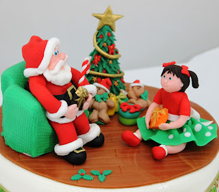 Primul decor pentru tort realizat integral de mine a fost pentru Craciun. Am bucurat deopotriva copiii si parintii de la petrecerea l-a care fusesem invitata.