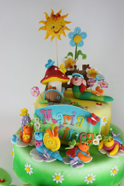 Desi vine vara, unul din torturile preferate este "Rapsodii de primavara". Recunosc ca si mie imi place mult, pentru ca imi permite sa ma joc, sa inventez, sa folosesc multe culori. Asa este si acest tort, pentru Maria Ilinca. Si vor mai urma cateva pe aceeasi tema, la care voi incerca sa adaug elemente noi.