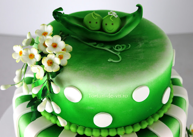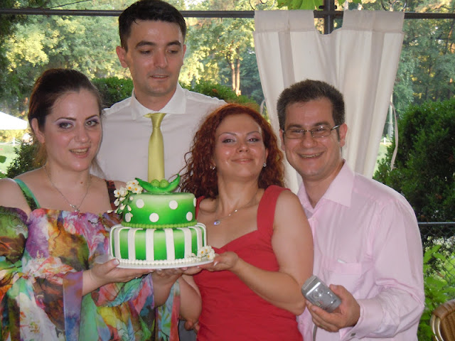 Irina si sotul ei au fost nasii de cununie a doi tineri minunati. Tema aleasa a fost "Doua mazarici intr-o pastaie", o tema interesanta care mi-a permis sa ma las purtata de imaginatie pentru a gasi decorul perfect. Irina a fost foarte incantata de ceea ce am reusit sa fac, incat mi-a trimis si cateva poze pe care sa le postez pe blog, impreuna cu tortul lor de vis!