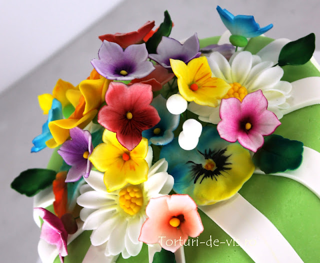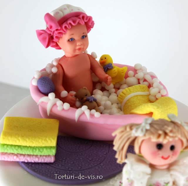 Iata din nou un tort inspirat din cele ale mamei mele, insa Corinei i-a placut atat de mult, incat si-a dorit unul la fel pentru botezul fetitei ei. Este un model care imi place si mie, pentru ca iese din tiparul clasic de tort de botez cu jucarii si are chiar o nota de eleganta, potrivita pentru o fetita.