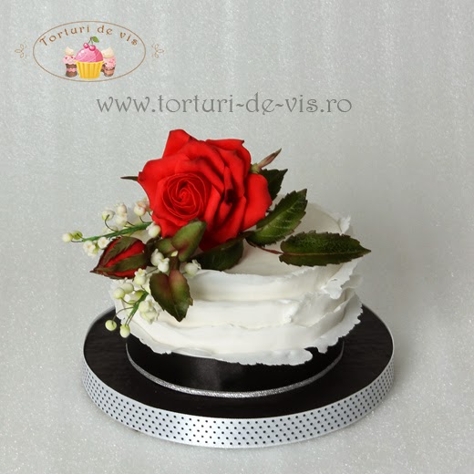 Tort alb-negru cu trandafiri rosii